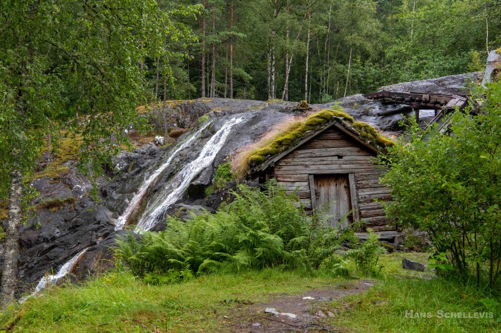 Voor de lunch stopten we op een parkeerterreintje aan een snelstromend water, waarachter een paar pittoreske historische hutjes aan een waterval bleken te liggen.