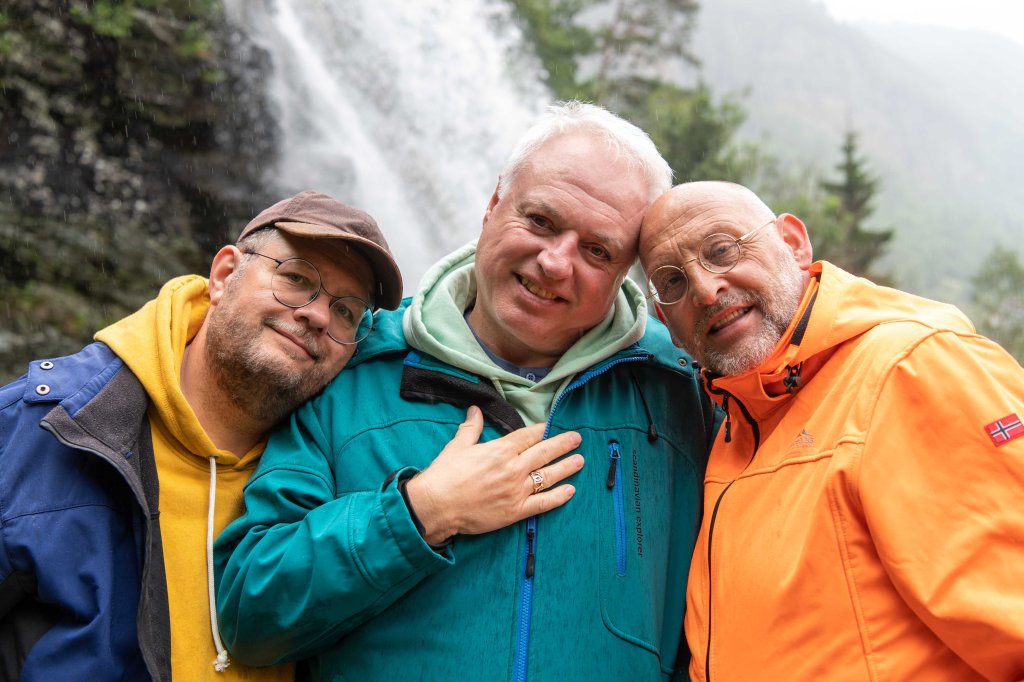 Voordat dat we naar boven konden, moest er natuurlijk eerst koffie/thee met een Noorse wafel genuttigd worden. En Hans heeft twee leuke Noorwegenspeldjes voor z’n cameratas gescoord, in het toeristenwinkeltje waar bijna niets te krijgen was (dat is een beetje cynisch bedoeld).