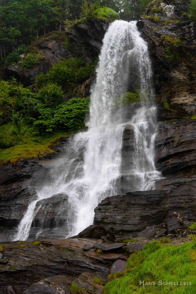 We komen langs de Steinsdalsfossen. Een waterval waar je achterlangs kunt klimmen.