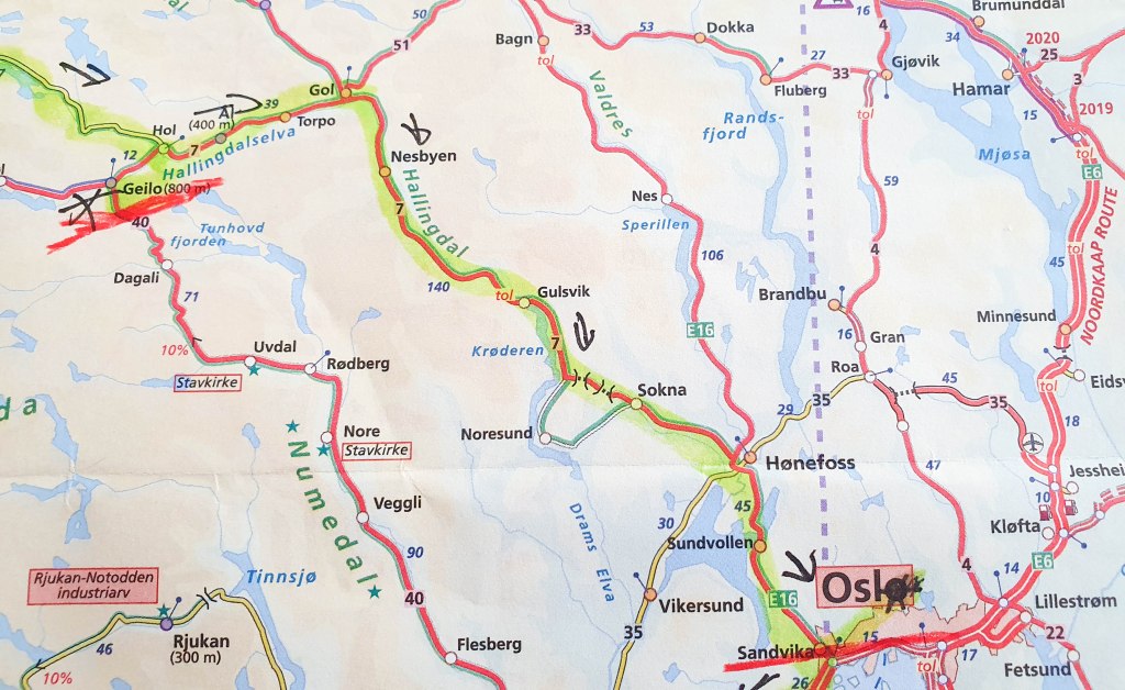 Vandaag reizen we naar onze laatste grote reisdoel: Oslo. We drinken onderweg koffie maar kunnen van de regen de bus niet uit. We lunchen onderweg bij de bus, maar verregenen volledig van de parkeerplaats. We zien Oslo gezellig tegemoet… 😳