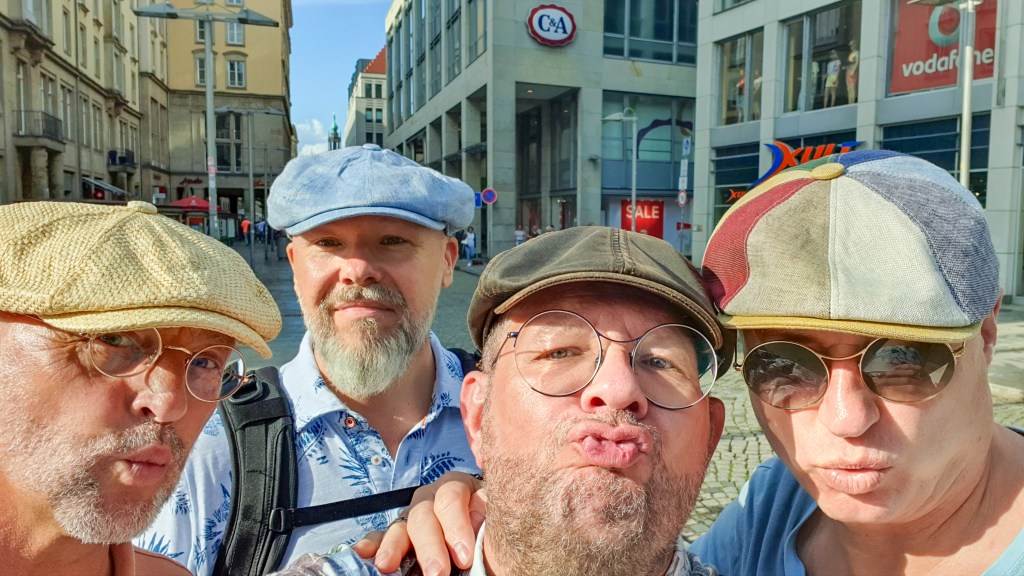 Als we tegen vijven in een erg leuke hoeden- en pettenwinkel terechtkomen (https://www.dresden-hut.de/), gebruiken we de gelegenheid om te schuilen voor een onverwachte regenbui, en bezorgen tegelijkertijd de winkelier de omzet van de week.