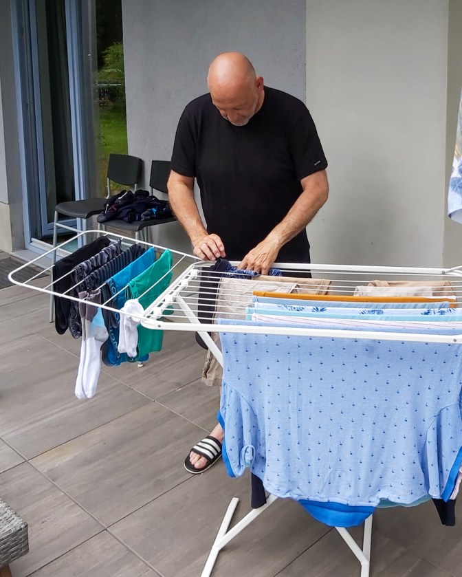 Als we thuiskomen, worden we getrakteerd op een felle regenbui: