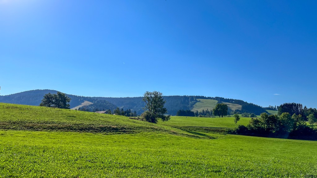 Rond 10:00 uur stappen we in de bus en beginnen onze reis naar Maierhöfen in de Allgäu (ten noorden van de Bodensee — of het Meer van Konstanz zoals wij vroeger op school leerden).