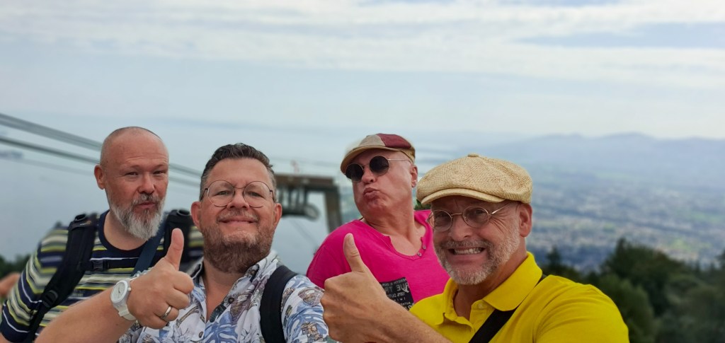Aldaar aangekomen blijkt het erg druk met toeristen (dat hadden we ook wel verwacht eerlijk gezegd), en na de lichte lunch (we moeten tenslotte nog ruimte overhouden voor andere zaken) lopen we richting de Pfänderbahn, die ons naar boven brengt.