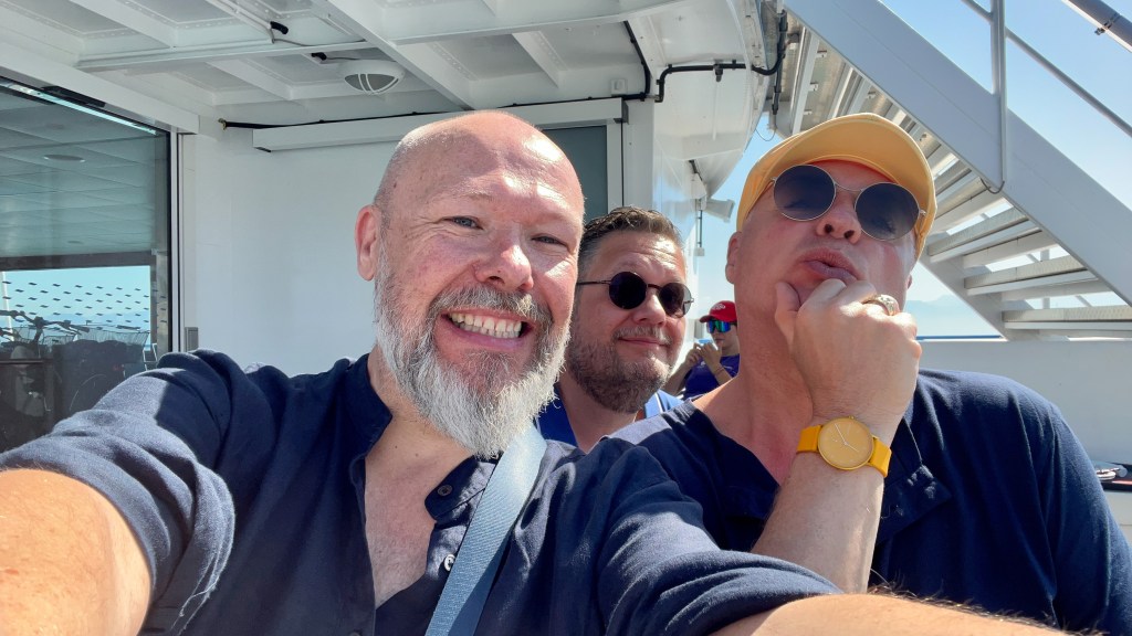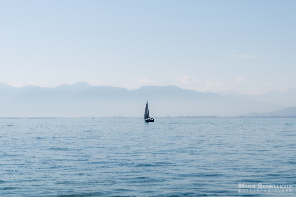 We rijden naar Lindau waar we op de boot naar Friedrichshafen stappen. Het is een bloedhete dag en het lekkere windje op het water is zeer welkom.